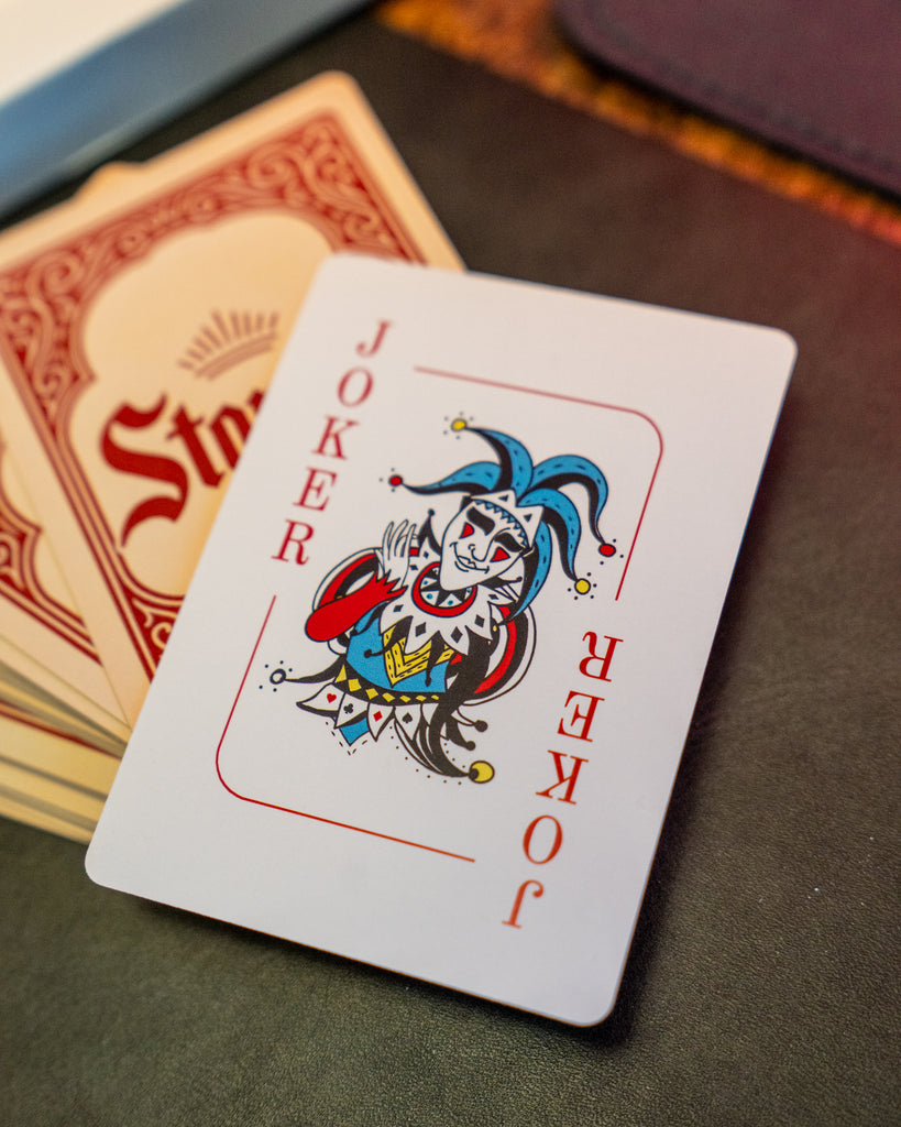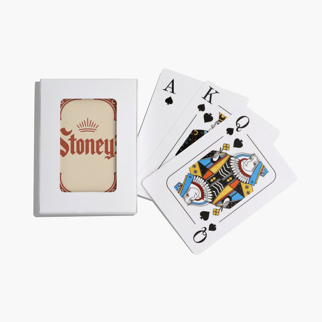 And because Stoney Jones famously won the brewery over a game of poker, a deck of playing cards just feels right. Packed in a white tuck box with a display window, it’s perfect for travel, game night, or your bar cart.