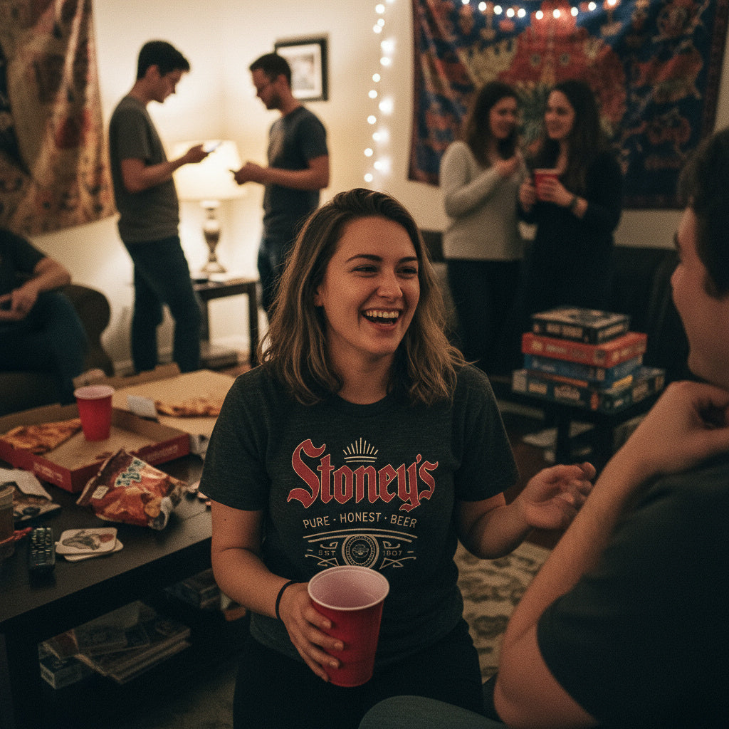 A Pure Honest Tee to go with your Pure Honest Beer. Featuring a perfect blend that is incredibly soft with great drape, stretch, and recovery. Two heathered colors with a vintage look. Featuring our distressed Stoney's logo.