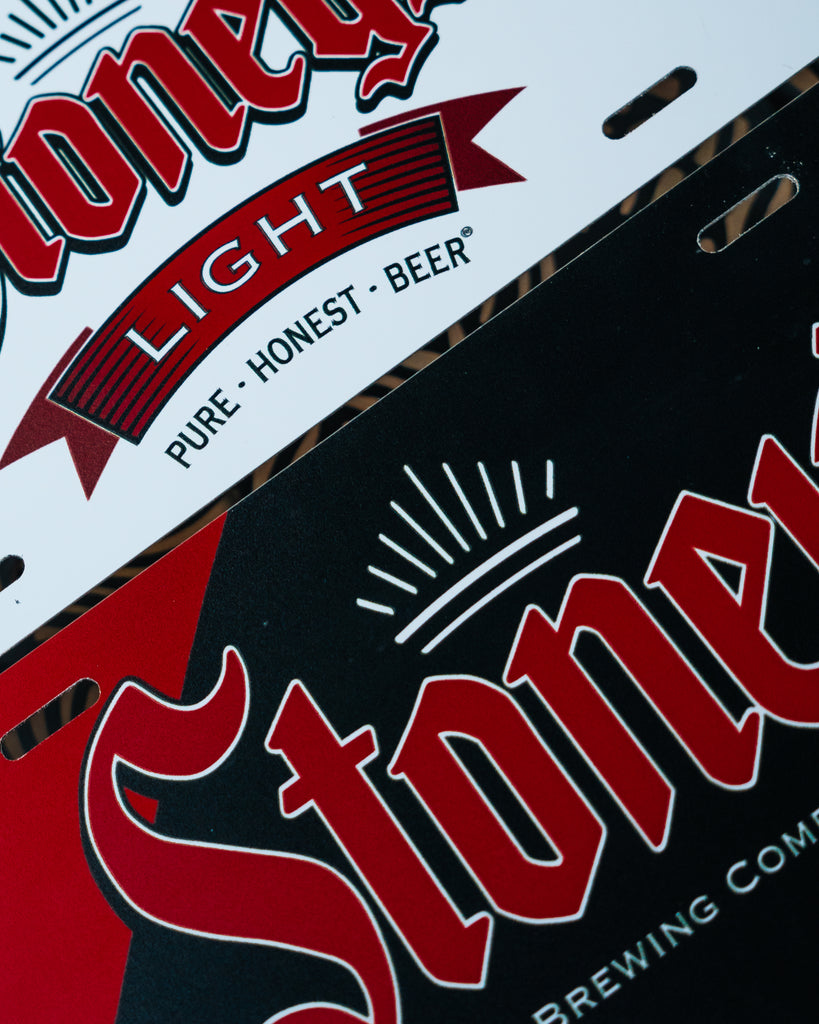 Dress your ride or your wall in Stoney’s style. Our vanity license plate is made from heavy-duty 1.2 mm thick aluminum with rounded corners and oval punch-outs for easy mounting. The face features a vinyl-printed graphic for sharp color and a subtle satin finish that looks great under any light. Choose from Stoney’s Light or the Traditional Stoney’s design to match your vibe.